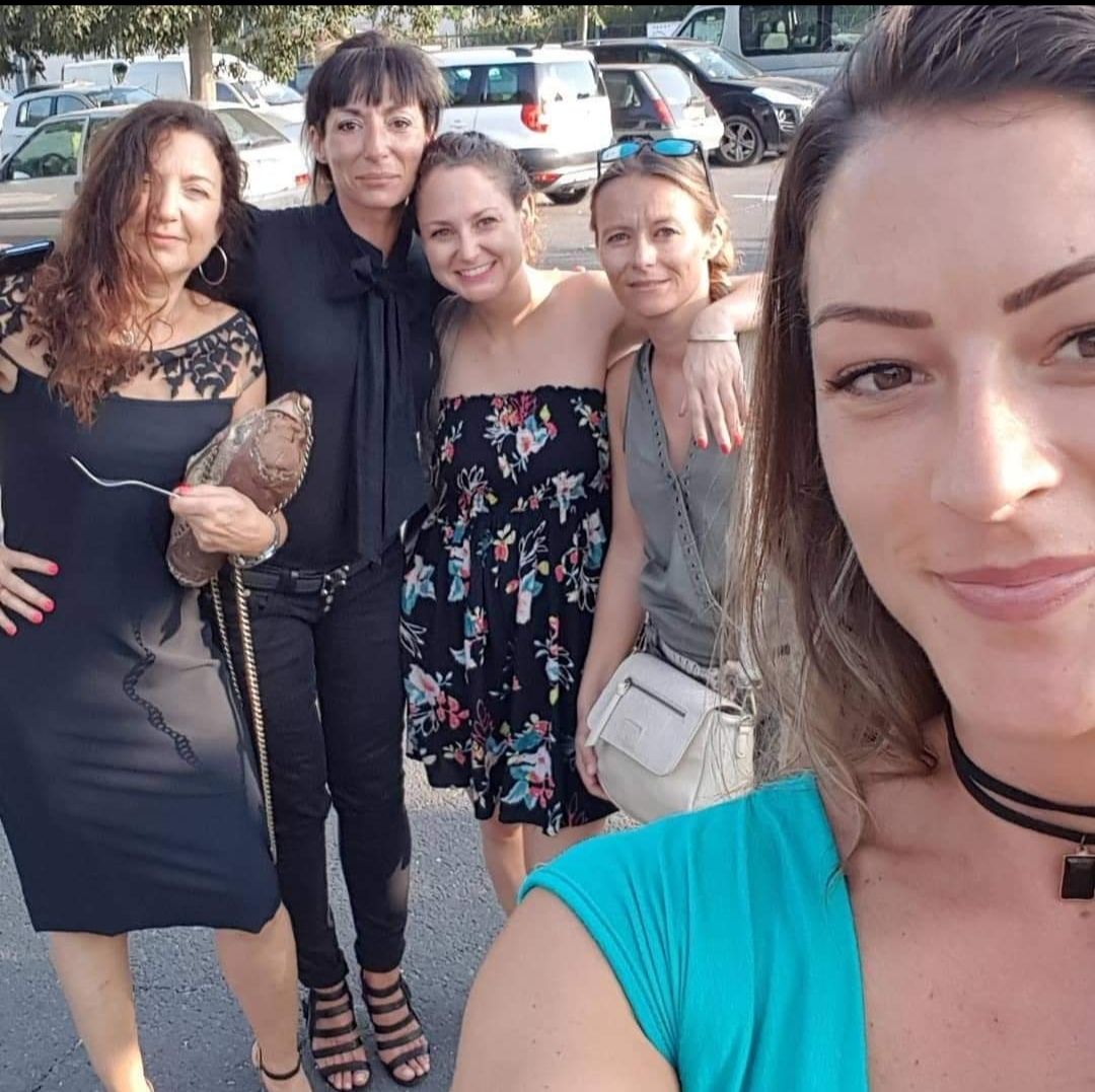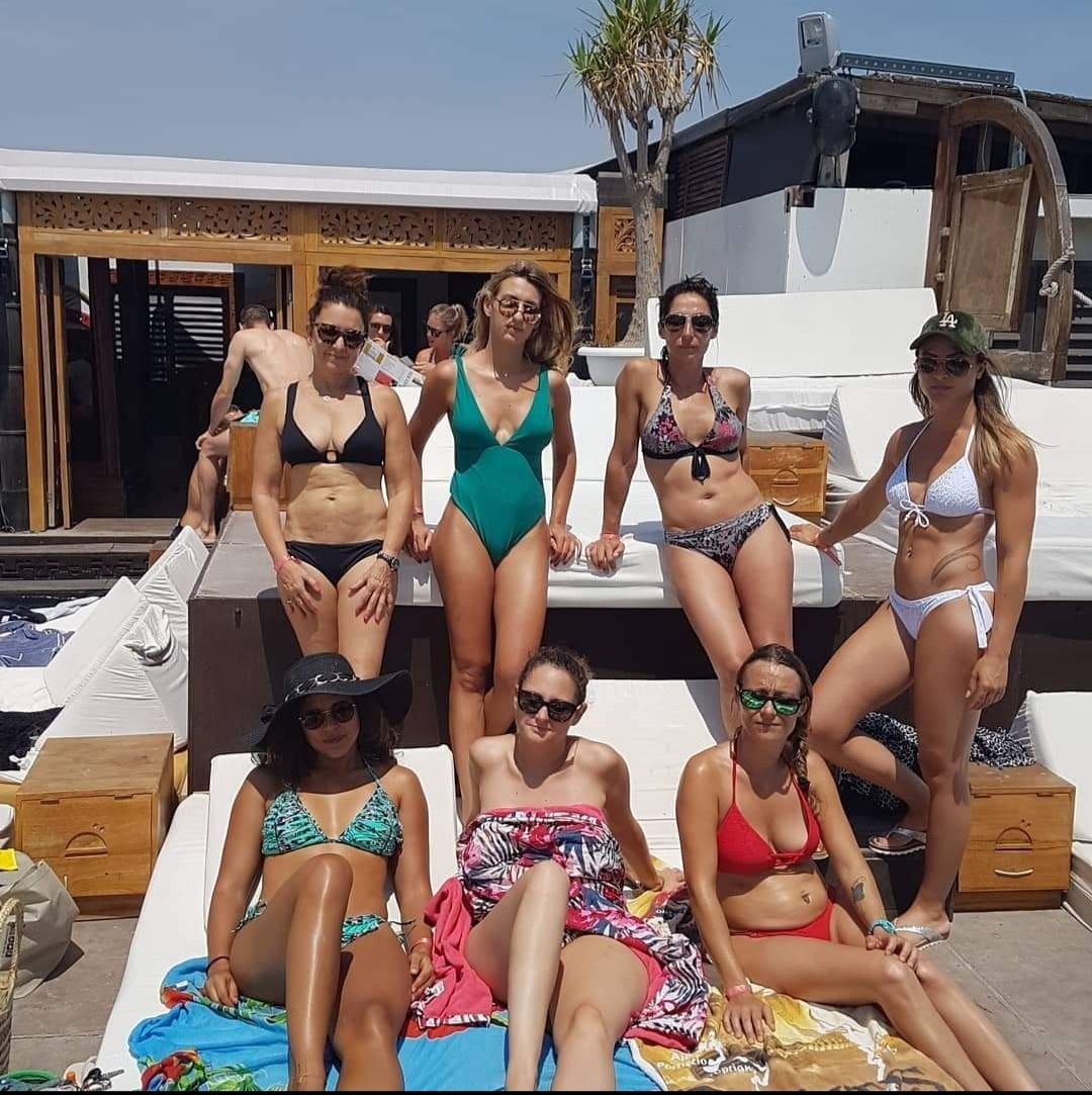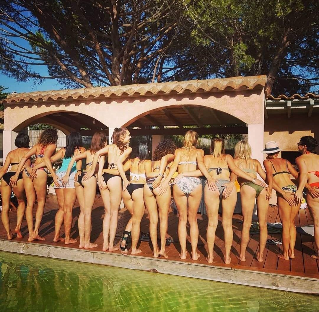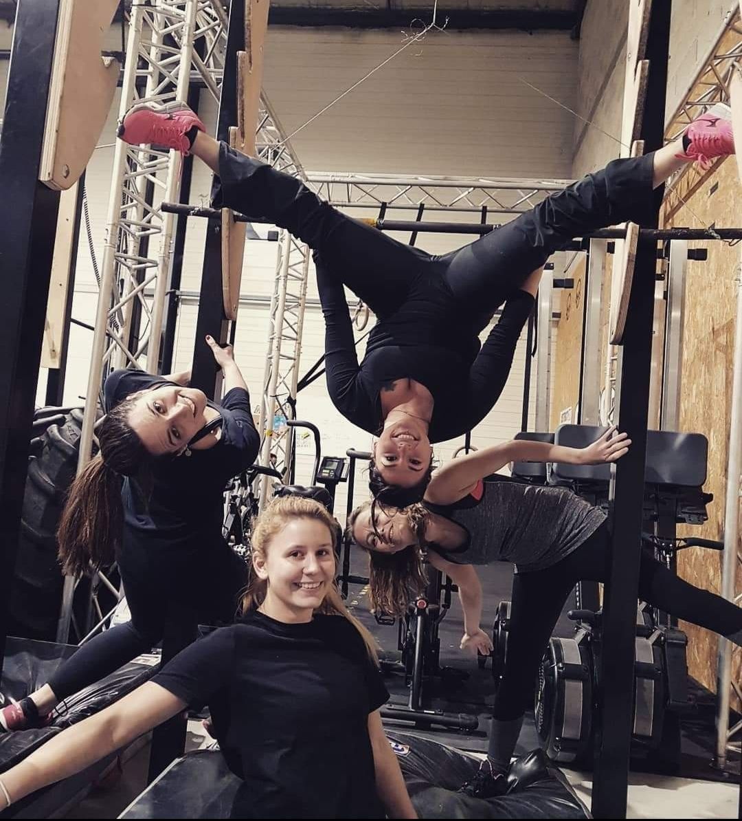 Un groupe de jeunes femmes posent pour une photo dans une salle de sport.